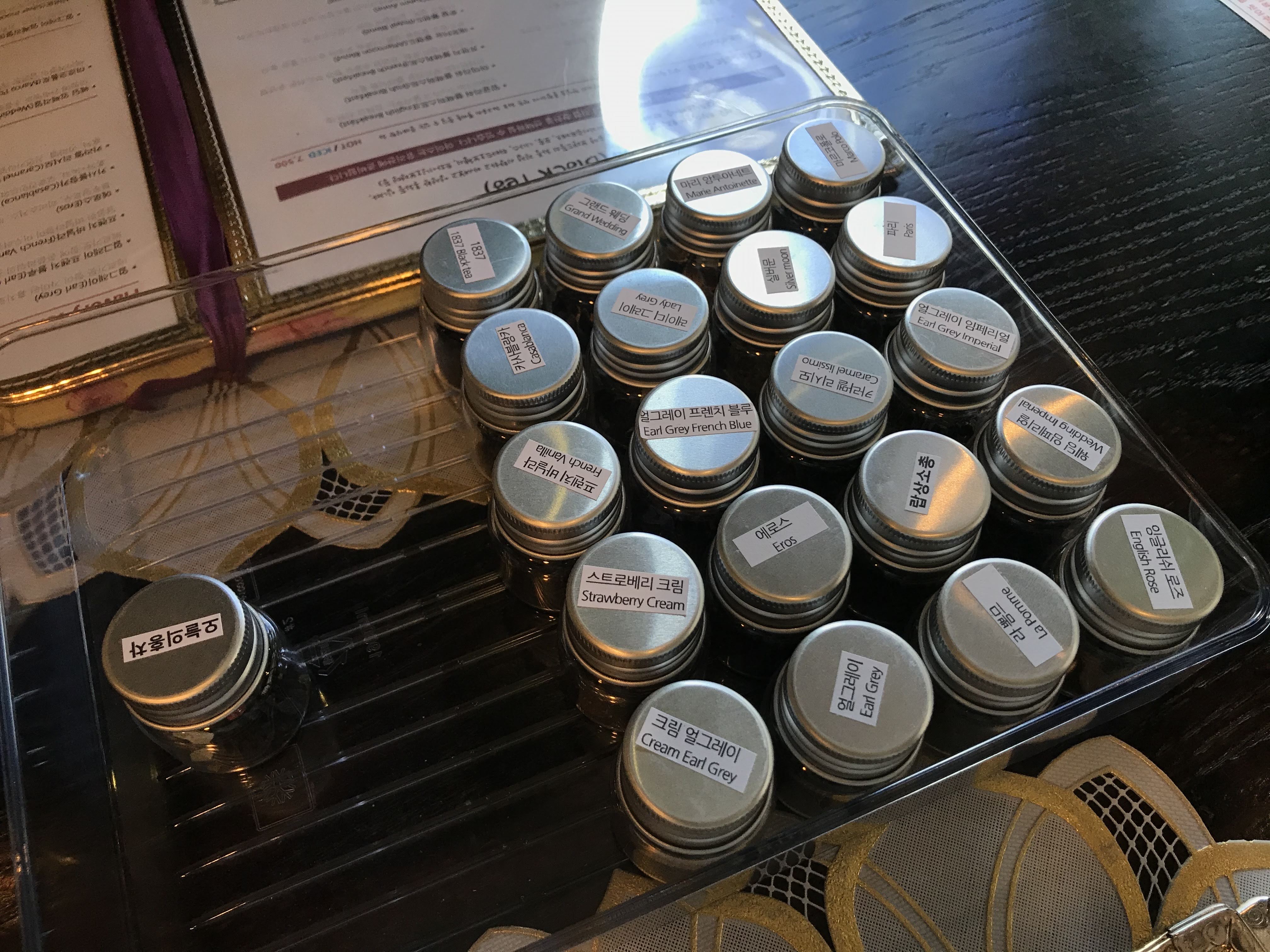 애프터눈티 세트를 예약 주문했기 때문에 홍차를 2가지 고를 수 있어요.