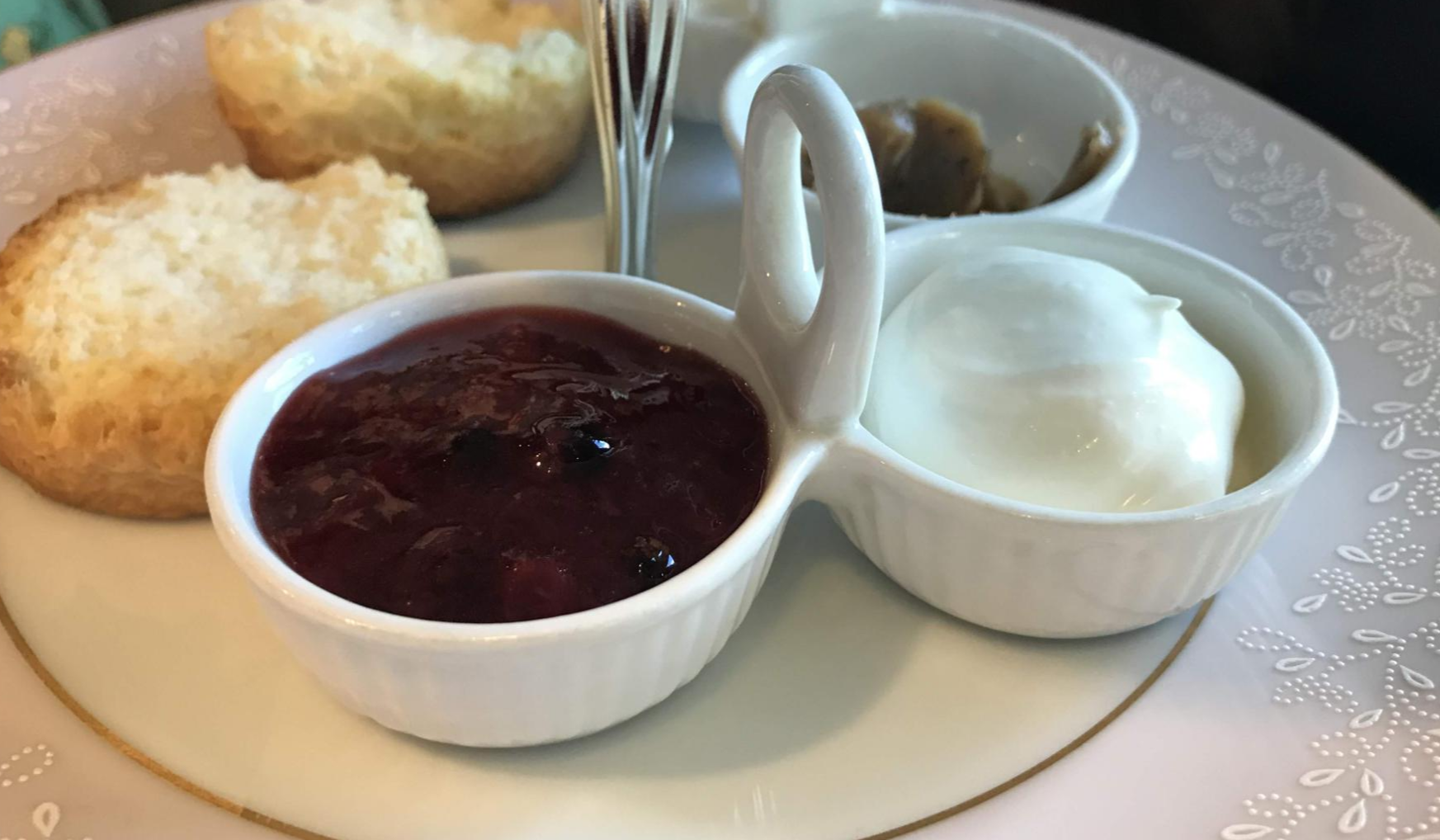 우유 크림과 선택한 얼그레이 잼이 함께 나왔어요.