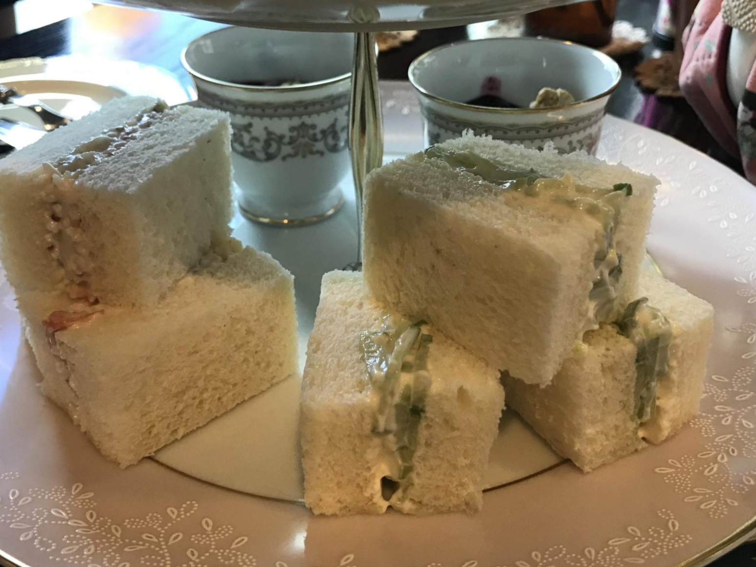 맨 아래층에는 그래놀라 요거트와 게살 샌드위치, 오이 샌드위치가 있었어요.