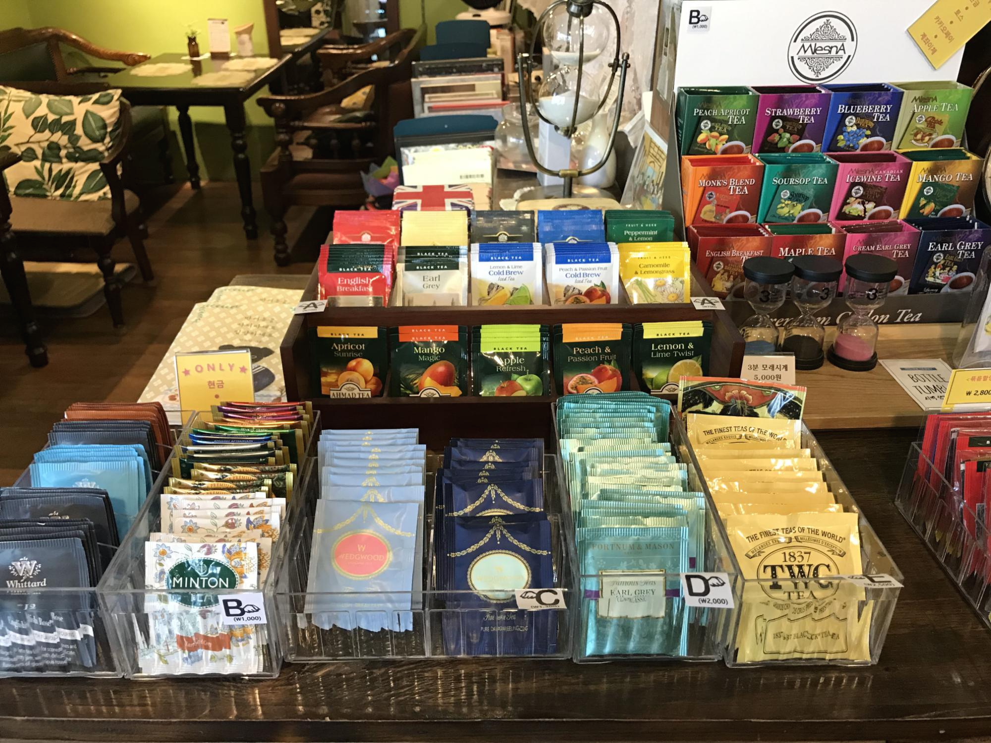 카운터 옆에 이렇게 티백과 마들렌 등을 판매하고 있으니,
